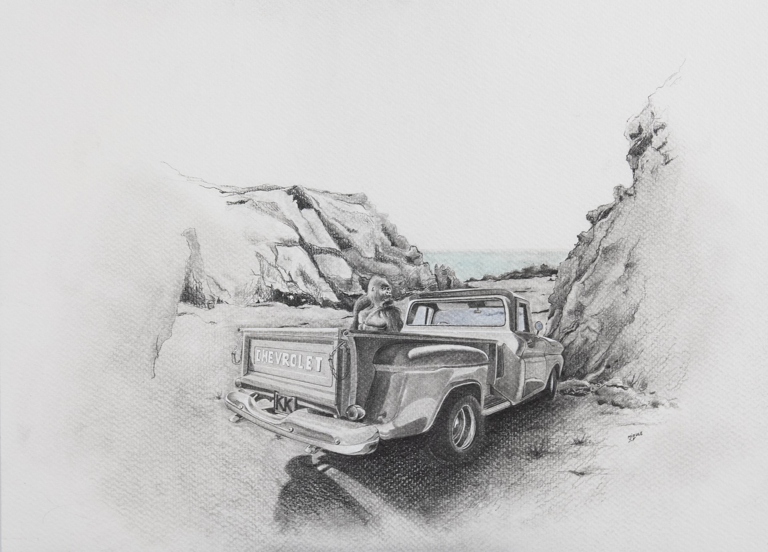 Cool Ride 2 - Graphite pencil and watercolor on paper 12” x 9”